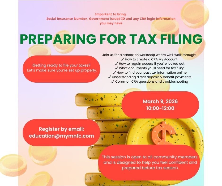 Back to All Events Education: Tax Filing Workshop Monday, March 9, 2026 10:00 a.m. 12:00 p.m. Mi'kmaw Native Friendship Centre 2021 Brunswick Street Halifax, NS, B3K 2Y5 Canada (map) Google Calendar ICS